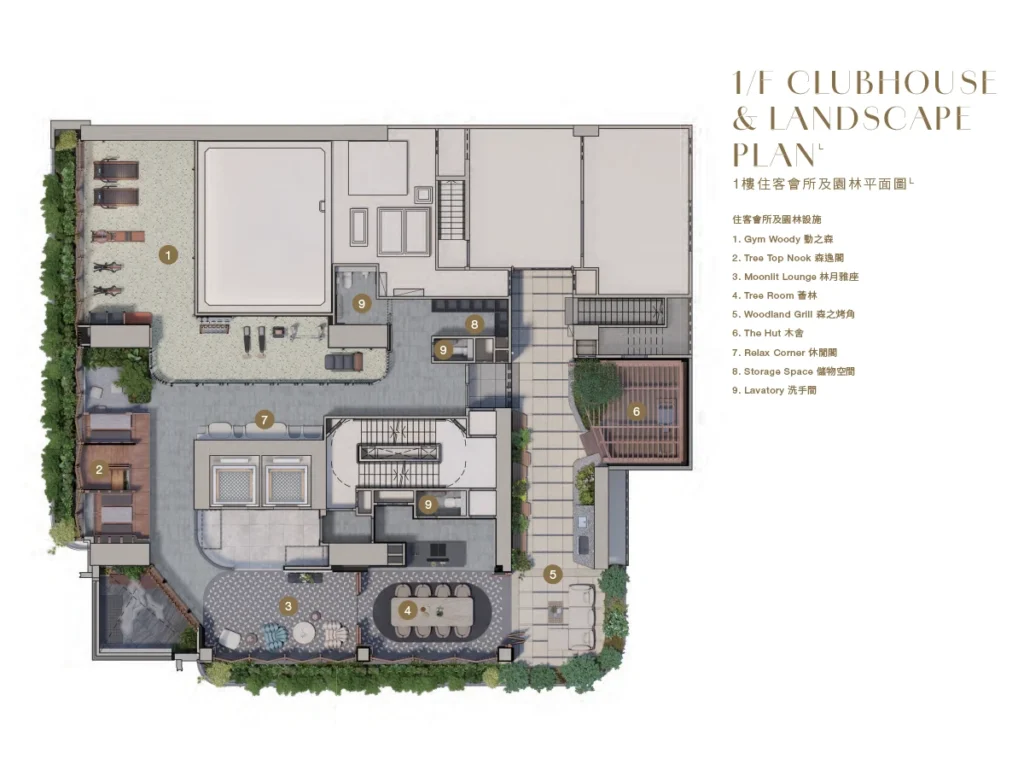 項目住客會所 Club woodis,由屢獲殊榮的頂尖設計團隊 IDA& BILLY 及 QUAD 聯手打造,以流光美藝為設計主題,融合木系元素、綠化空間及天然陽光,打造呼應自然的半戶外生活。會所連園林面積逾 3,600 平方呎,提供健身室、瑜珈場地、共享空間、BBQ 及休閒雅座等多元化設施,動靜皆宜。
